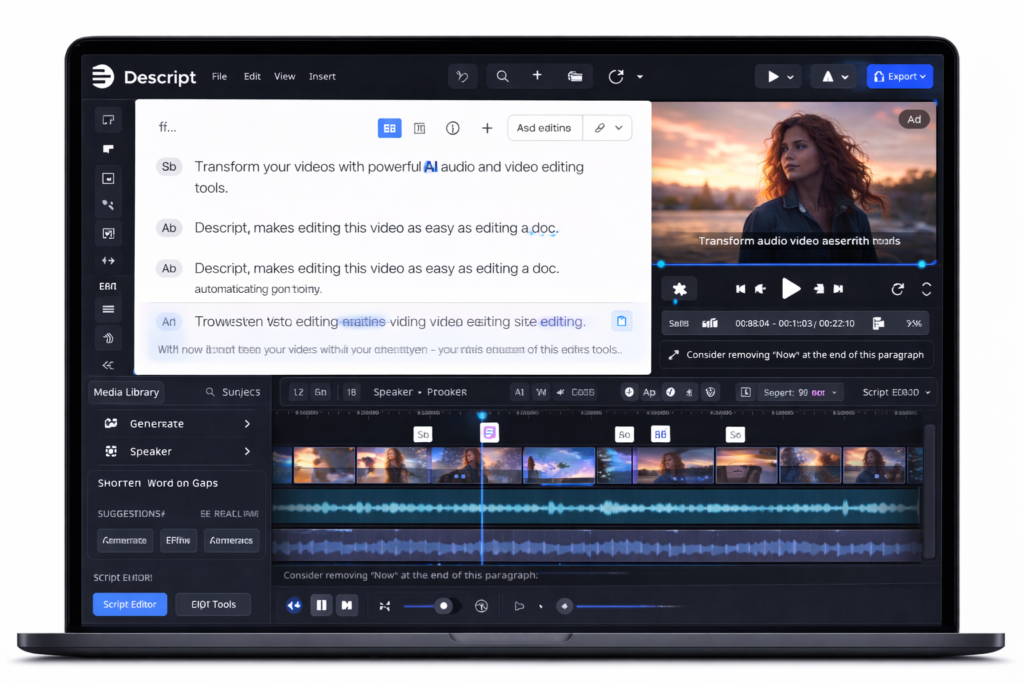 10. Descript – AI Video & Audio Editing